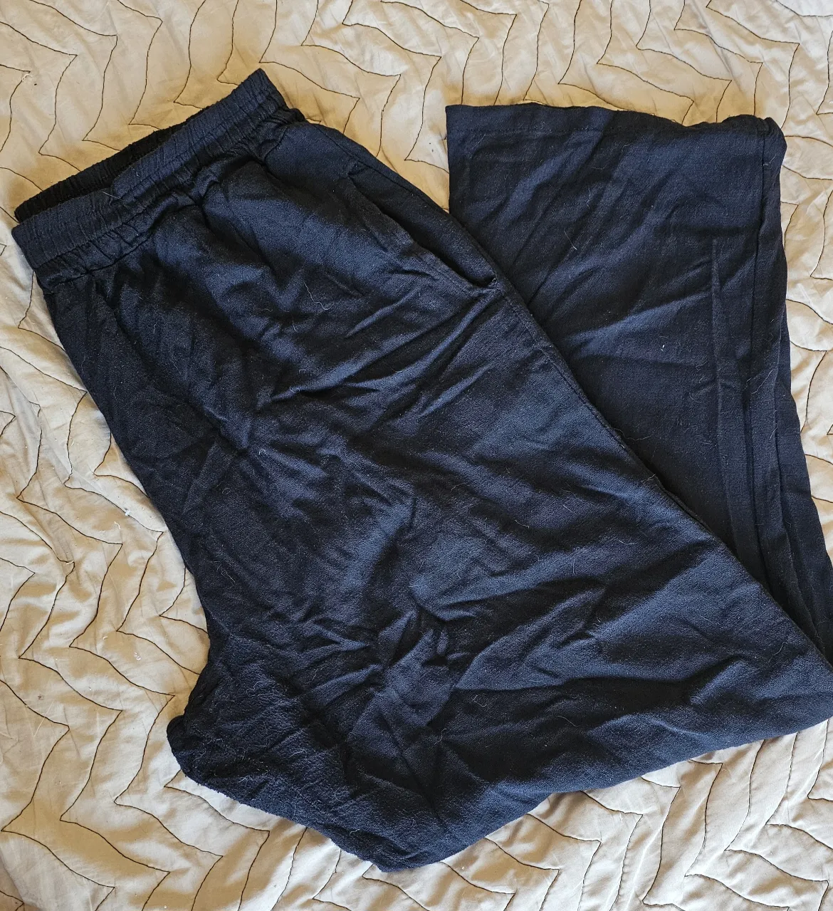 Pantalón de color negro con cintura elastizada y bolsillos laterales. Talle 7 amplio (la tela sede bastante) detalles de uso en la entrepierna (ver foto)
