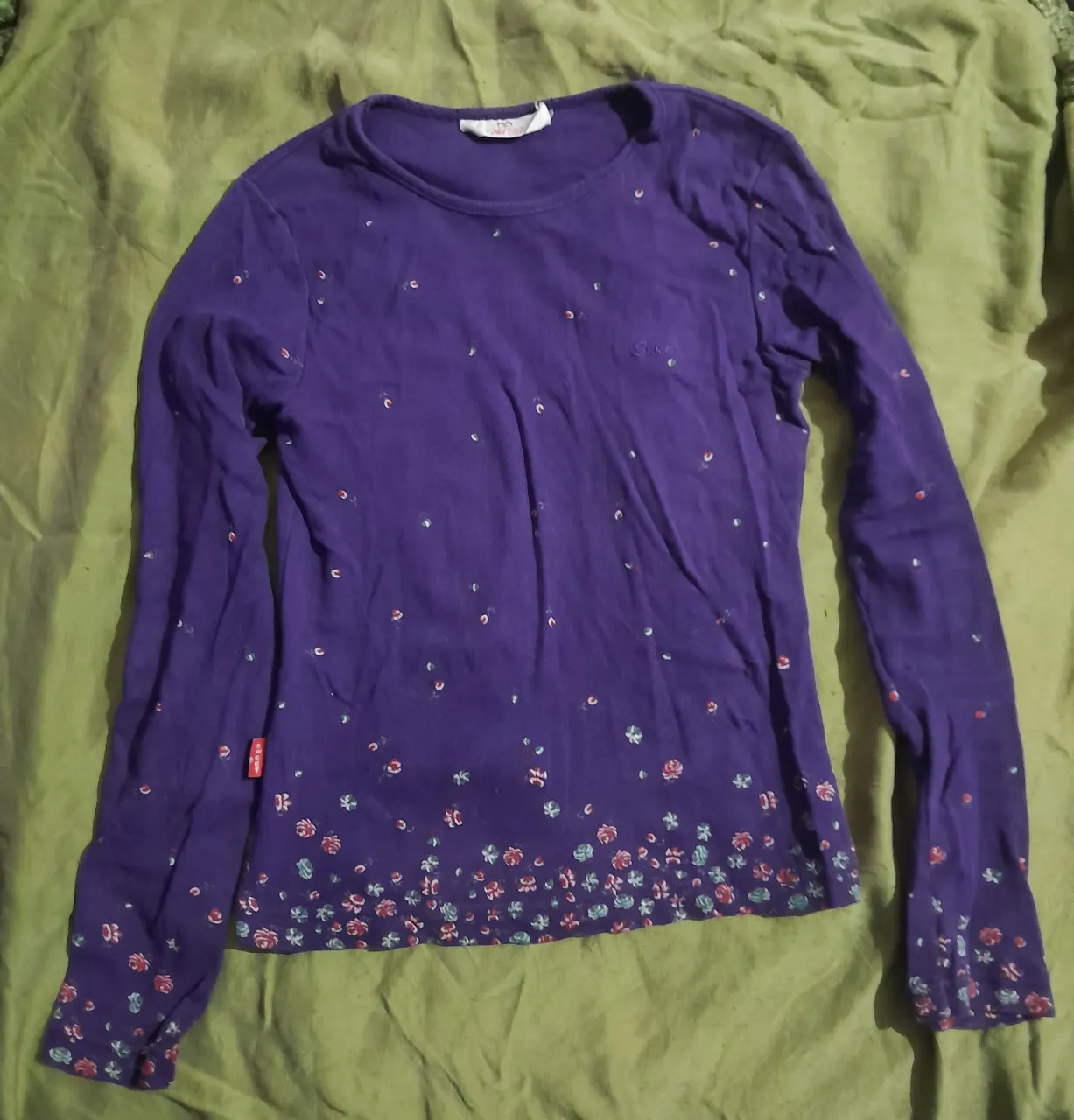 Remera manga larga de algodón, color violeta con estampa floral en toda la prenda. Ideal para un look casual y cómodo.