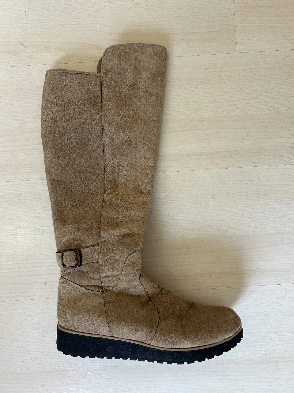 Botas de caña alta color beige, con hebilla y cierre lateral. Ideales para un look canchero y abrigado.