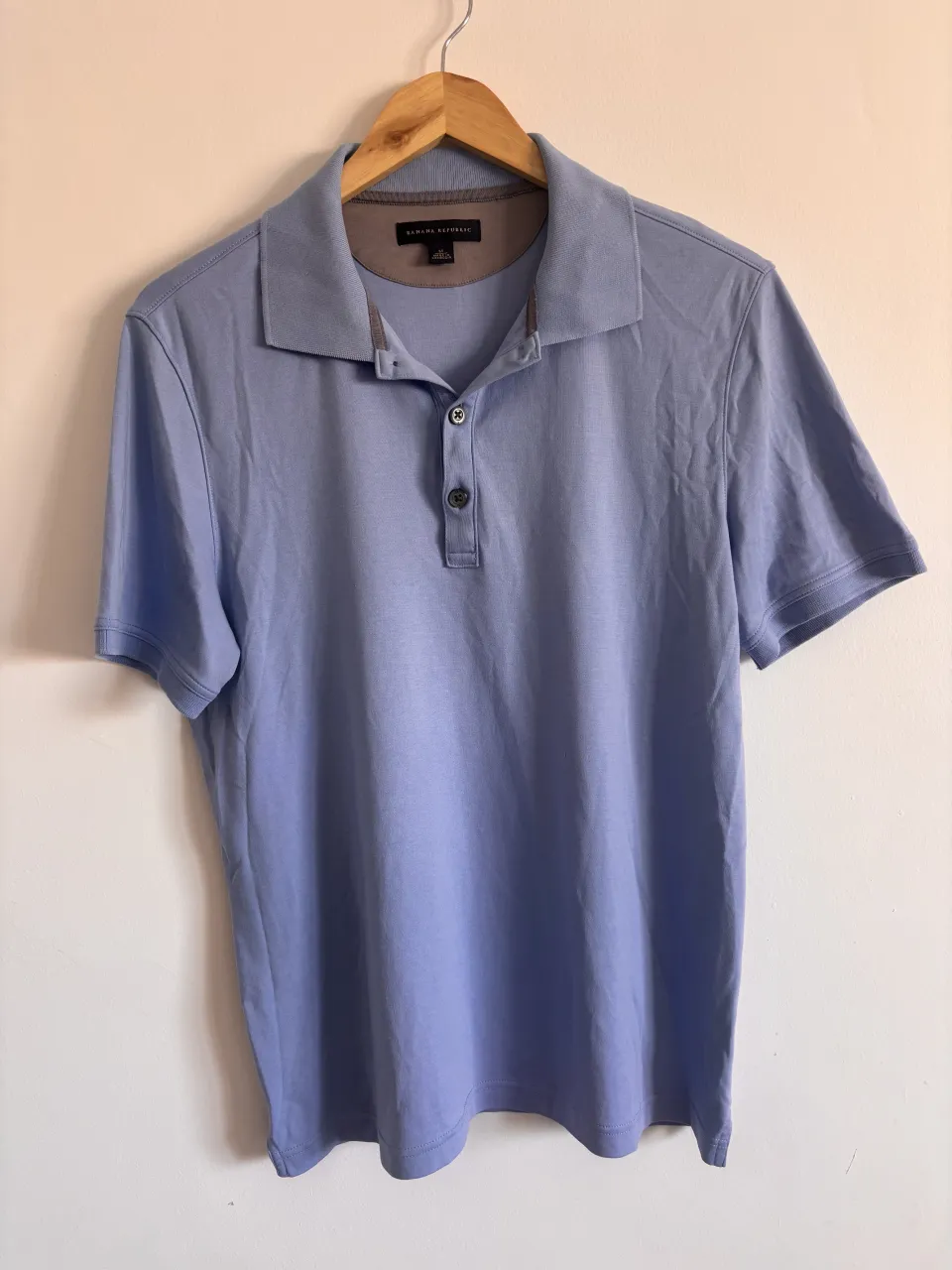 Remera tipo polo de manga corta en un suave tono celeste. Perfecta para un look casual y cómodo, ideal para el día a día o una salida informal.