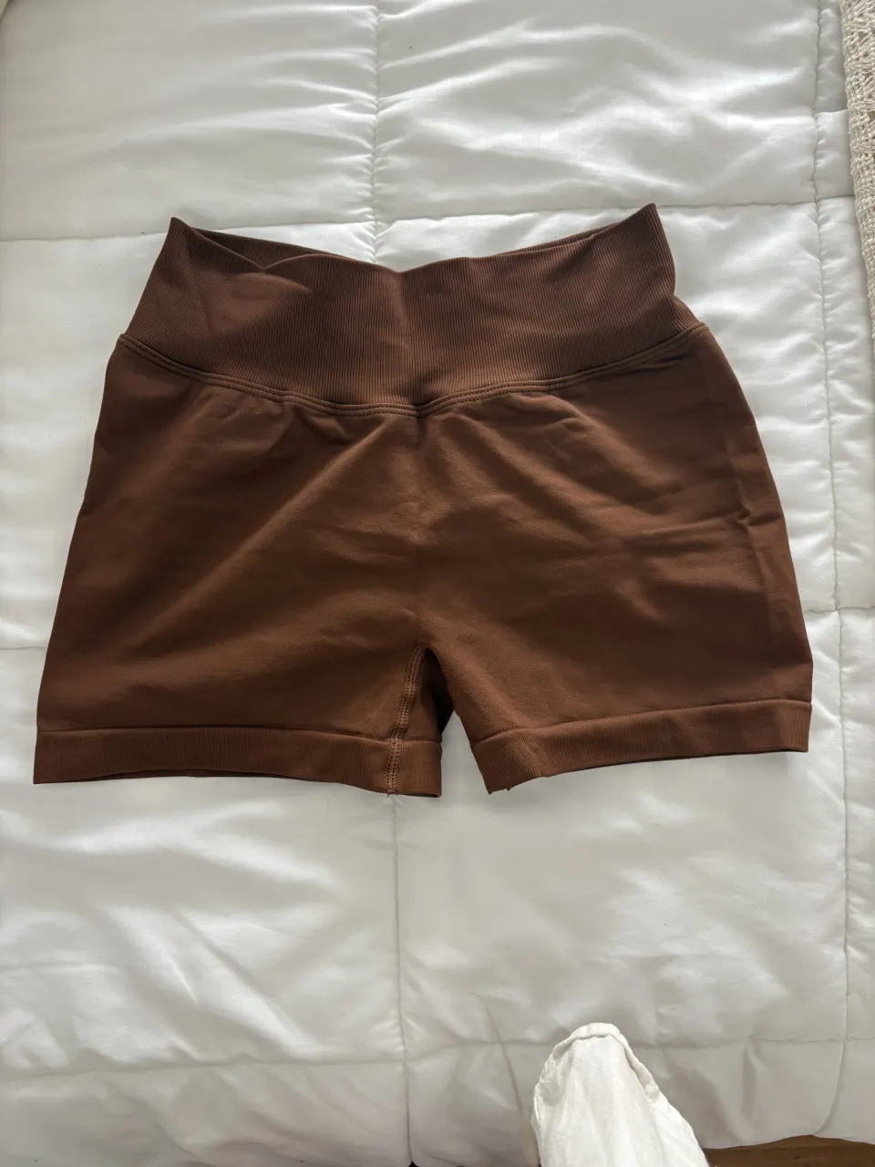 Shorts deportivos marrones con fruncido en la parte trasera. Ideales para entrenar o para un look comfy.