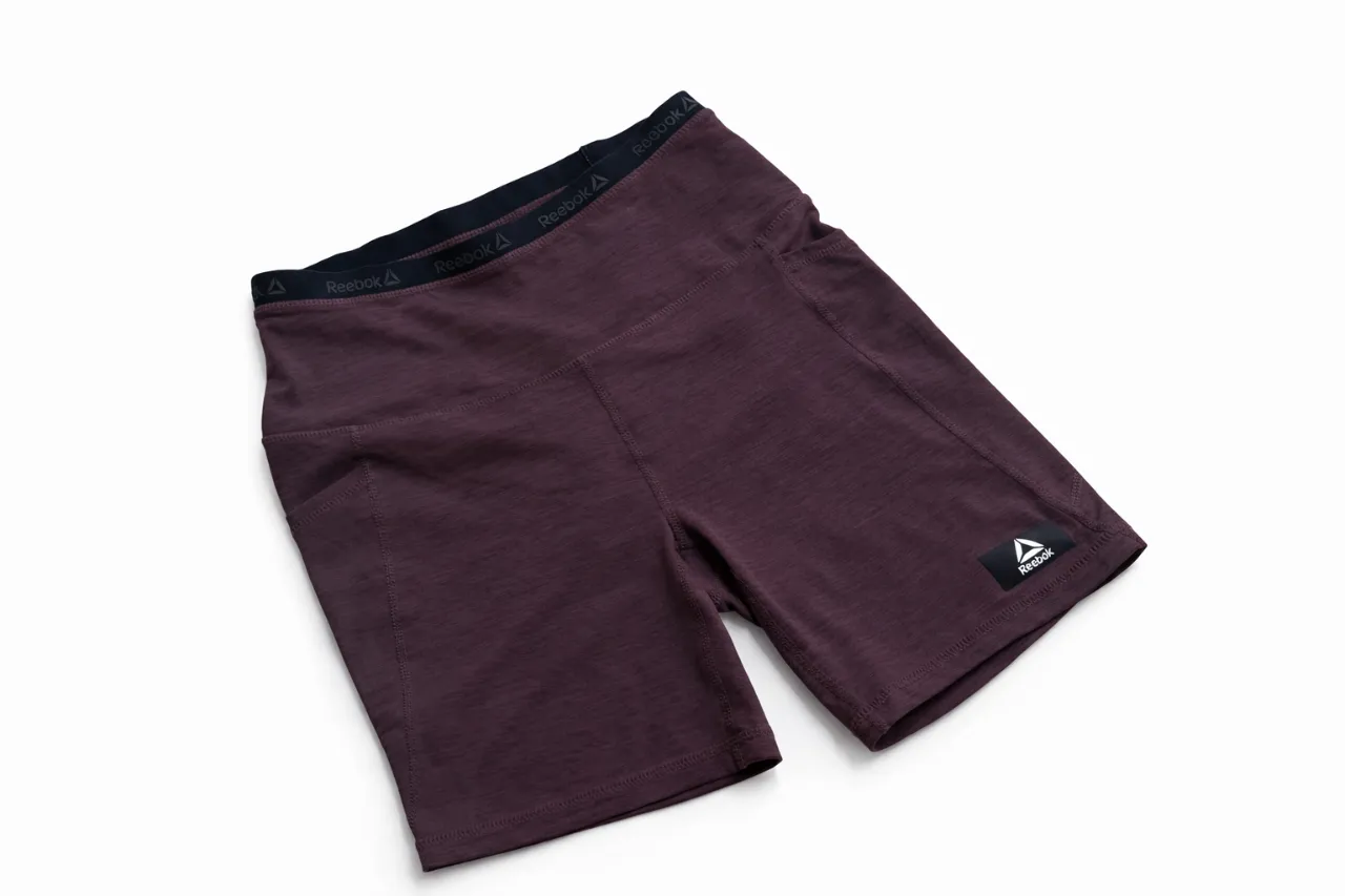 Biker reebok ,de color morado oscuro, ideales para entrenar o para un look casual y cómodo. talle s , Cuentan con cintura elástica y bolsillos laterales.