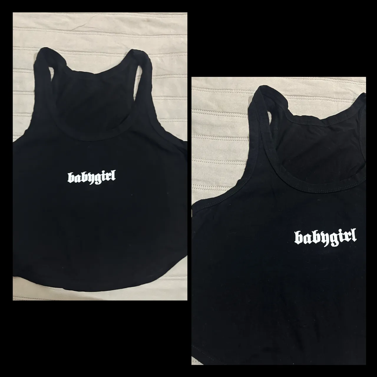 Musculosa negra cortita con estampa "babygirl" en blanco.