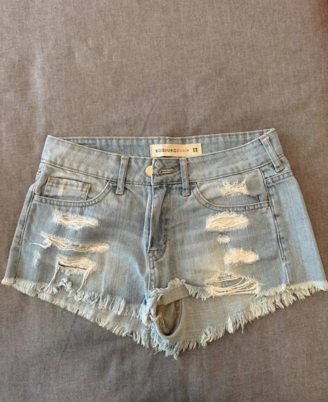 Shorts de jean con roturas y detalles desflecados en el ruedo. Posee bolsillos delanteros y traseros.