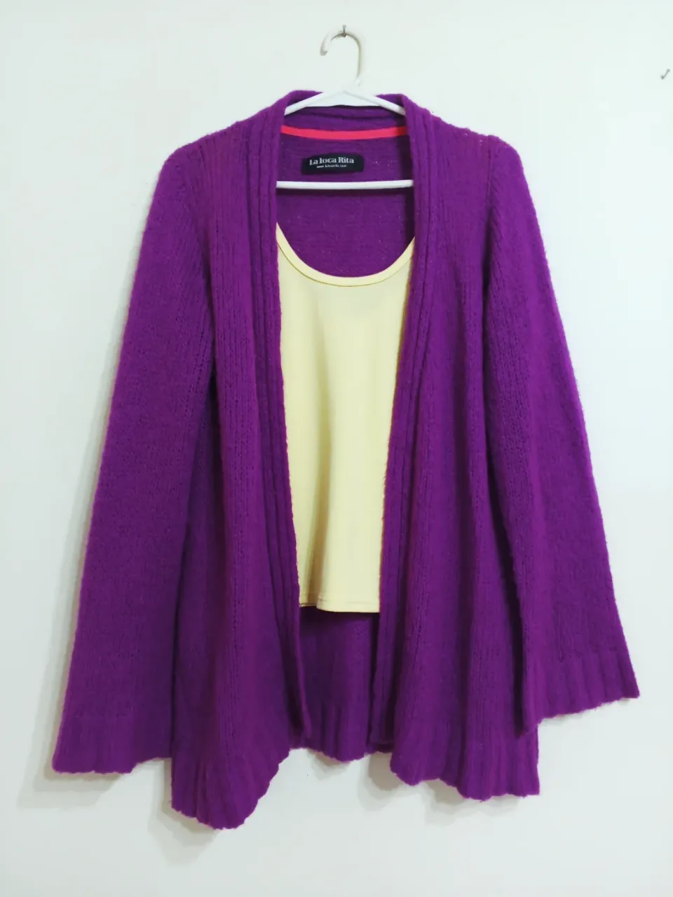 “Cardigan Mohair La Loca Rita Talle L ” Material : Mohair, acrilico y poliamida. Medidas (ancho 50 cm, largo 74 cm) Suave, ligero y con caída fluida. Combinaciones posibles (con jeans, con vestido, etc.) Impecable.