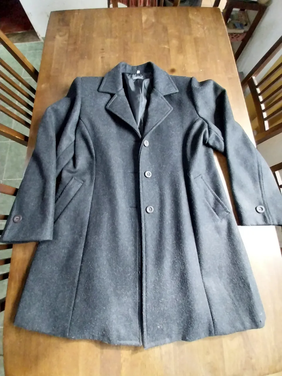Abrigo largo de paño gris, ideal para el frío. Posee cuello solapa, tres botones al frente y dos bolsillos laterales. Un clásico que no puede faltar en tu guardarropa.