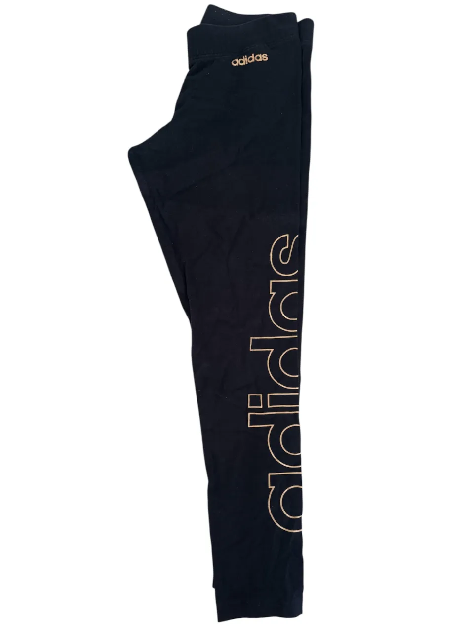 Calzas deportivas negras con logo de Adidas en el lateral. Ideales para entrenar o para un look casual y cómodo.