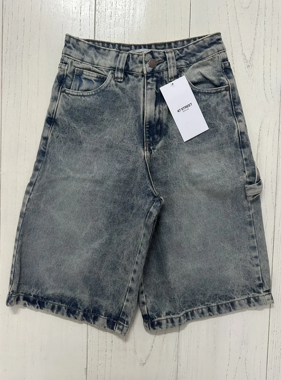 Shorts de jean tiro alto, estilo cargo, con lavado desgastado. Perfectos para un look urbano y canchero.