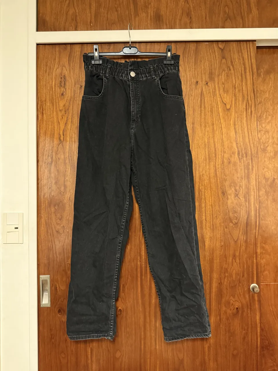 Jean de tiro alto con cintura elastizada y bolsillos delanteros. Cierre de botón y bolsillos traseros.