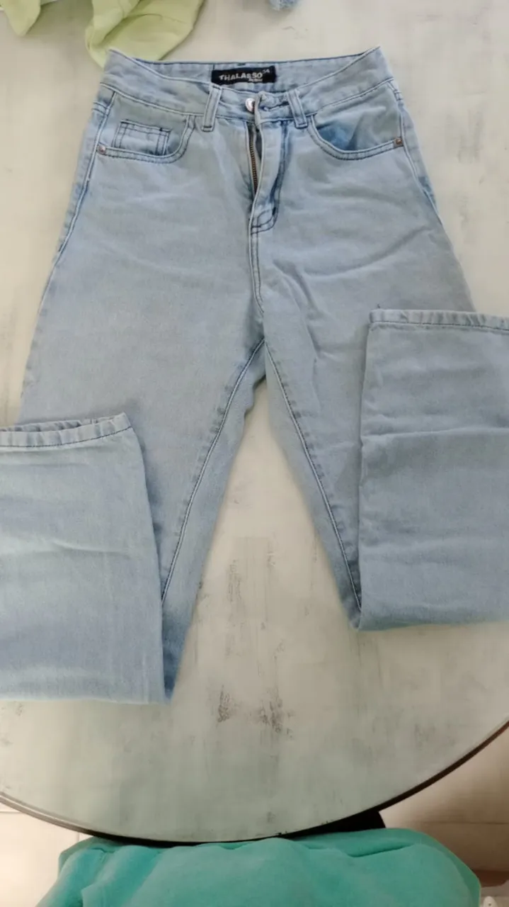 Jean tiro alto, color celeste claro, corte wide leg. Ideal para un look casual y canchero.