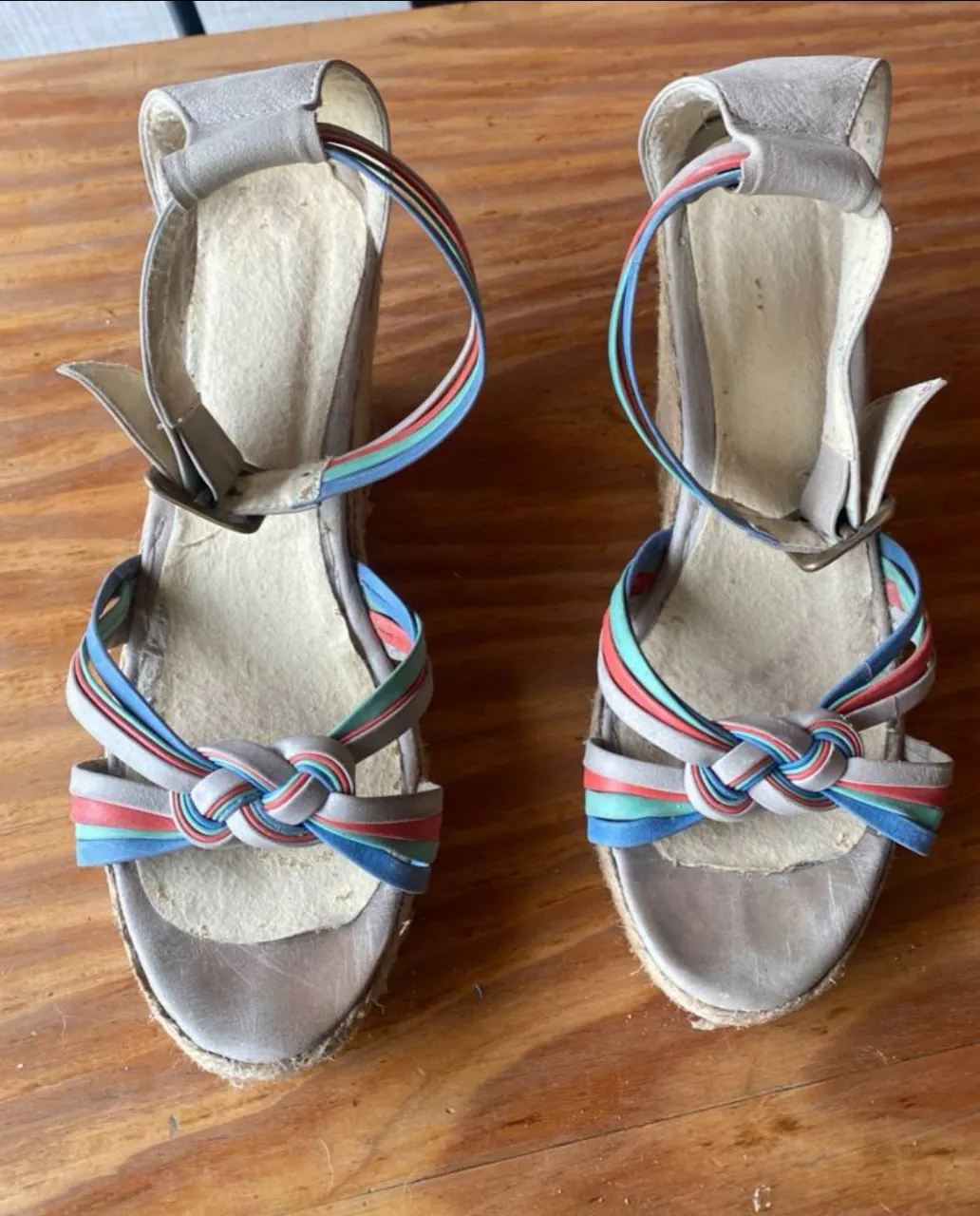 sandalias de plataforma con yute. color cementos combinada con celeste/salmon/agua marina. talle 38 alto 10cm interior 25cm