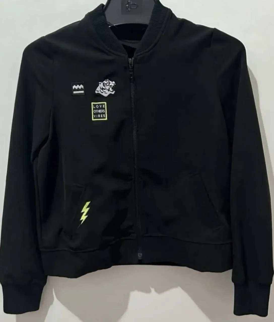 campera bomber americanino talle m chico, puede ir para s. perfecto estado, un uso. tela tipo poliéster no muy abrigada, es para media estación. Medidas: axila a axila 45cm, largo 53cm, largo mangas 62cm, hombro a hombro 39cm.