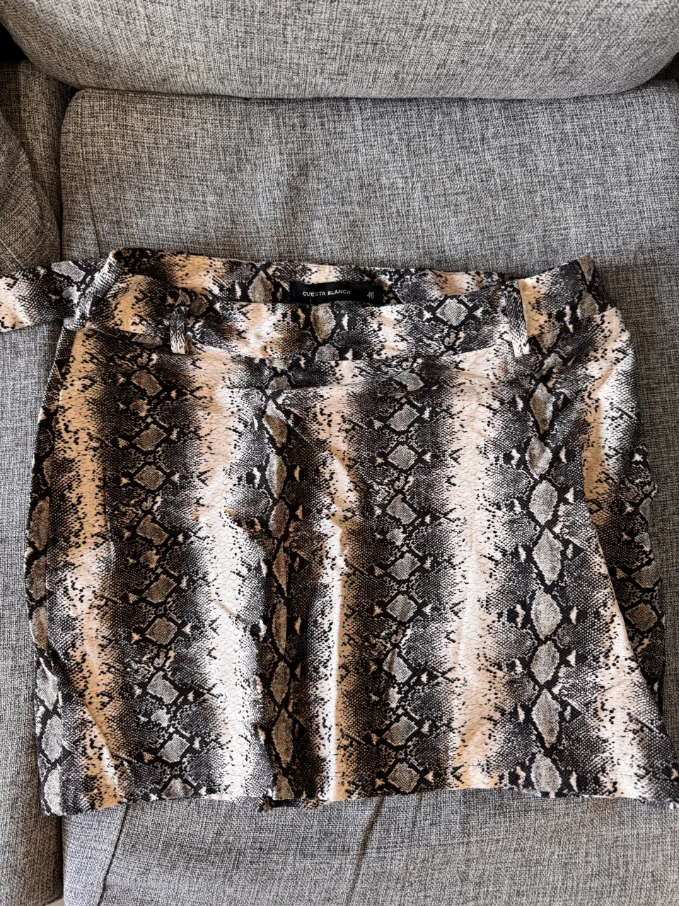 Pollera mini con estampa de serpiente, ideal para un look canchero y audaz. Perfecta para combinar con tops o remeras básicas. talle 46!