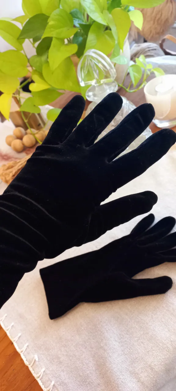 Guantes largos de terciopelo negros. C&A talle Mediano Spandex Impecables