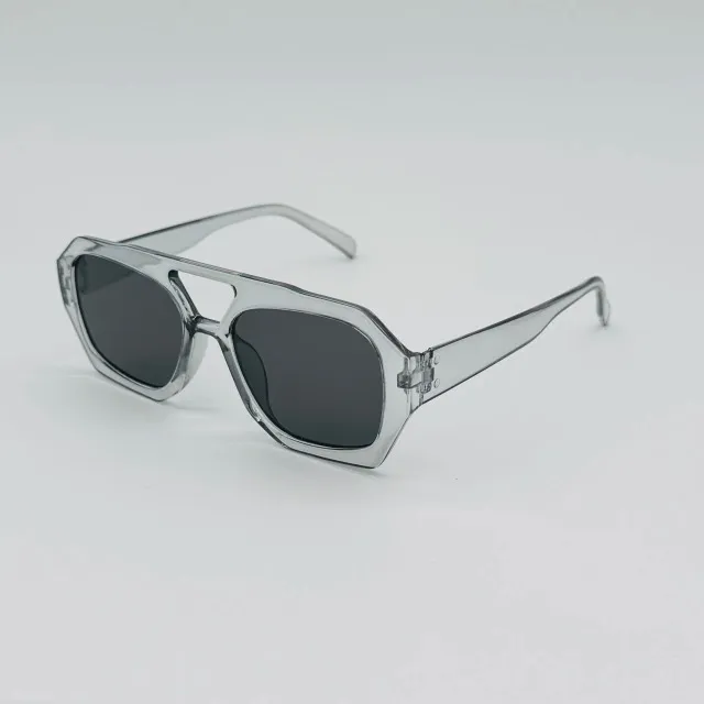 Lentes de sol transparentes con marco grueso y lentes oscuros. Diseño moderno y llamativo, ideal para completar cualquier look.