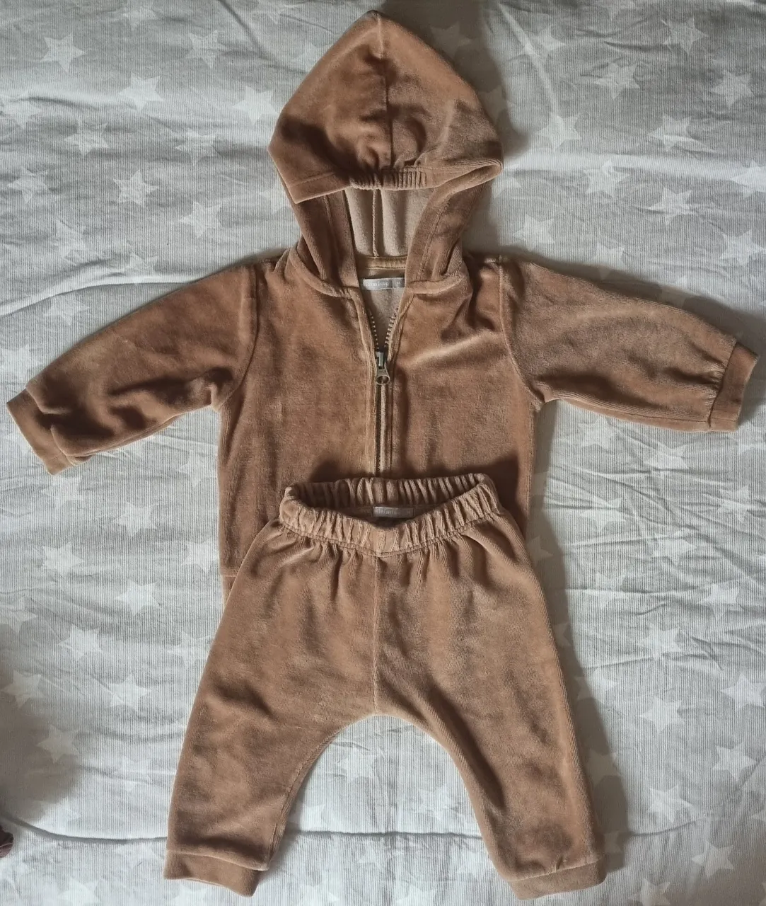 Conjunto de pantalón y campera con capucha de plush, ideal para los días frescos. La campera tiene cierre al frente y el pantalón es tiro alto con cintura elástica. Súper cómodo y canchero para los más chiquitos.