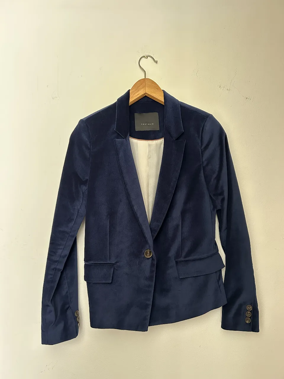 Blazer de terciopelo azul marino, ideal para un look elegante y sofisticado. Perfecto para eventos formales o para darle un toque chic a tu outfit de trabajo. Su corte clásico y el detalle de los botones en las mangas lo hacen una prenda versátil y con estilo. Impecable estado. La verdad que lo vendo porque me queda chico, es una joya! Medidas aprox: Hombro a hombro: 37 cm Altura total: 58 cm Sisa: 39 cm Largo manga: 60 cm