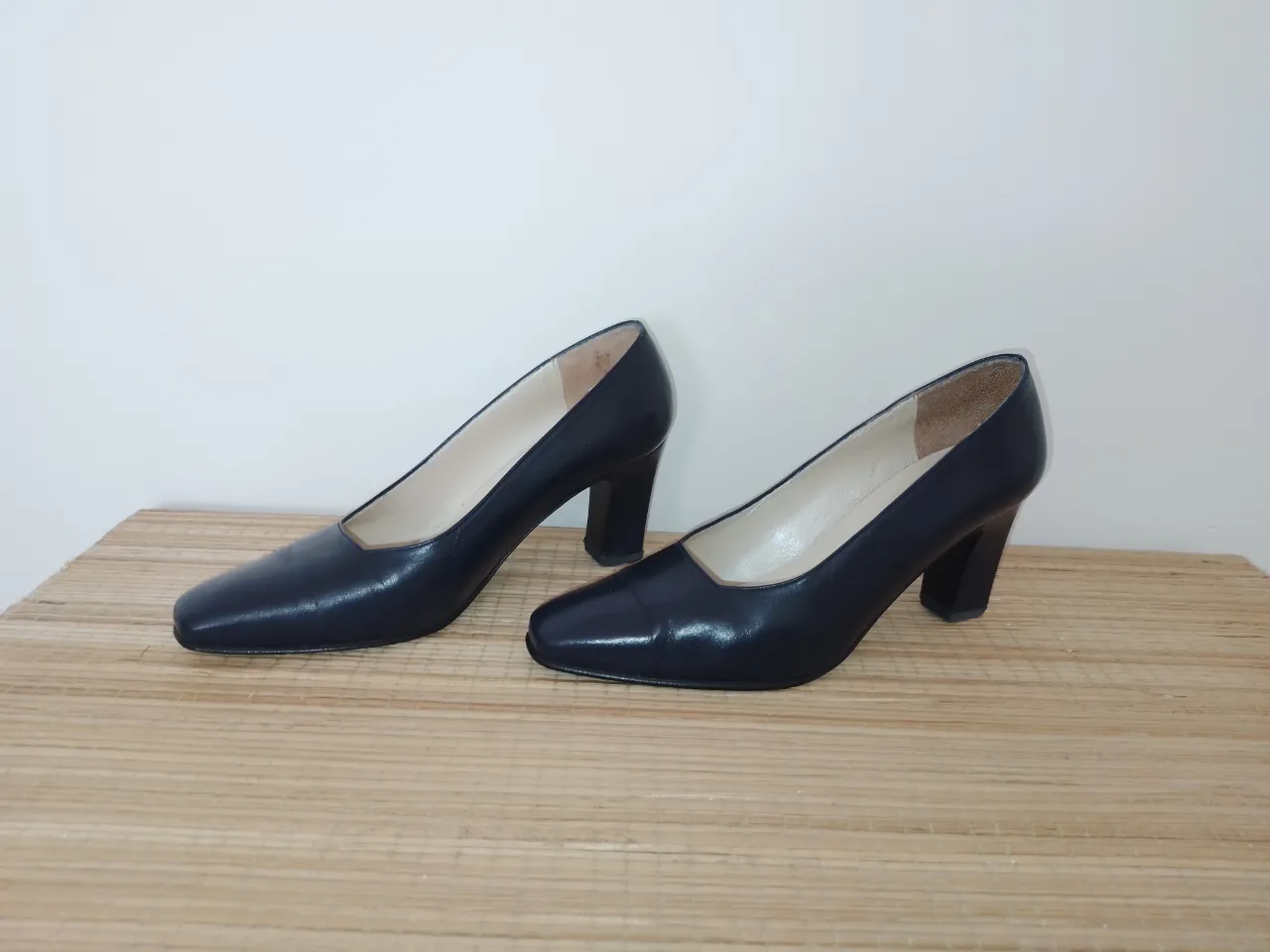 Zapatos de taco alto negros, con punta cuadrada de cabritilla .