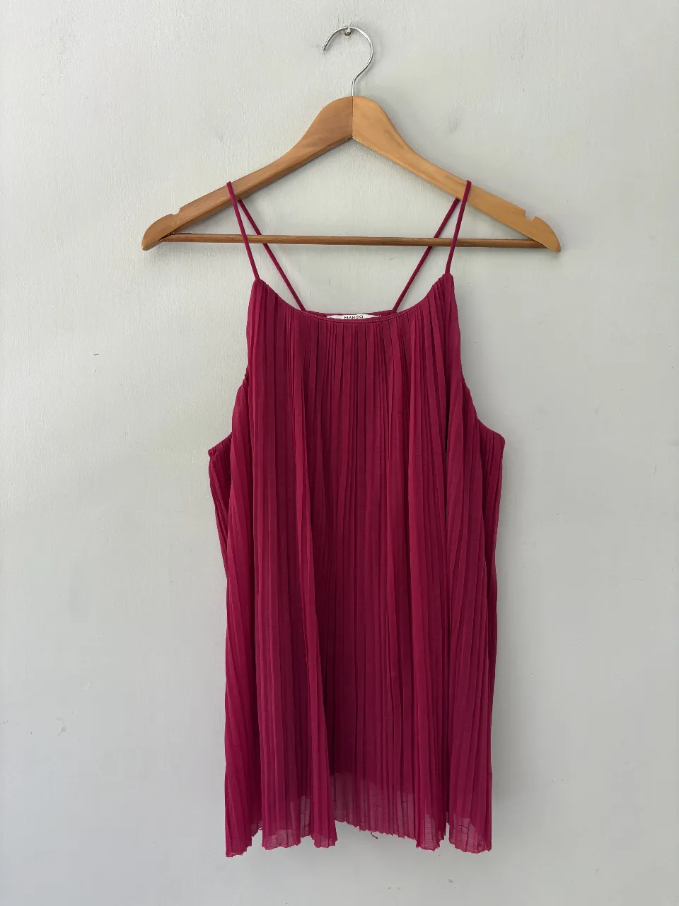 Top rosa vibrante con delicados pliegues y tiras finas. Ideal para un look fresco y femenino, perfecto para salidas casuales o eventos de día.
