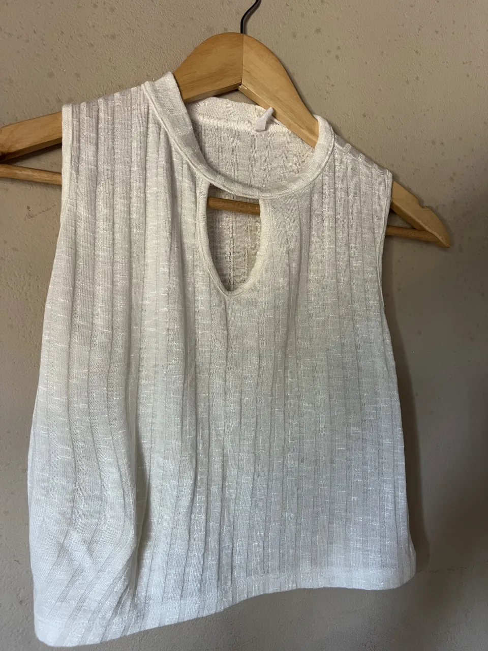 Musculosa blanca de tejido acanalado con recorte en el cuello.