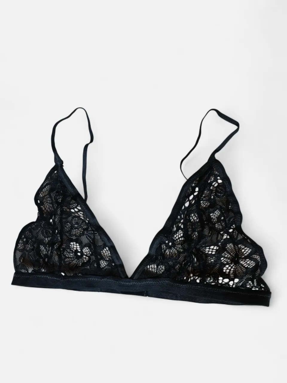 Bralete de encaje negro, súper delicado y sensual. Ideal para sentirte especial en cualquier momento. Su diseño con tiras finas y detalles de encaje lo hacen único.