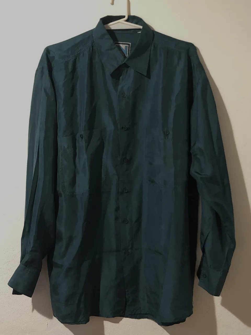 Camisa de vestir manga larga, color verde petróleo. Posee cuello clásico y bolsillos con botones al frente. Ideal para un look elegante y sofisticado.