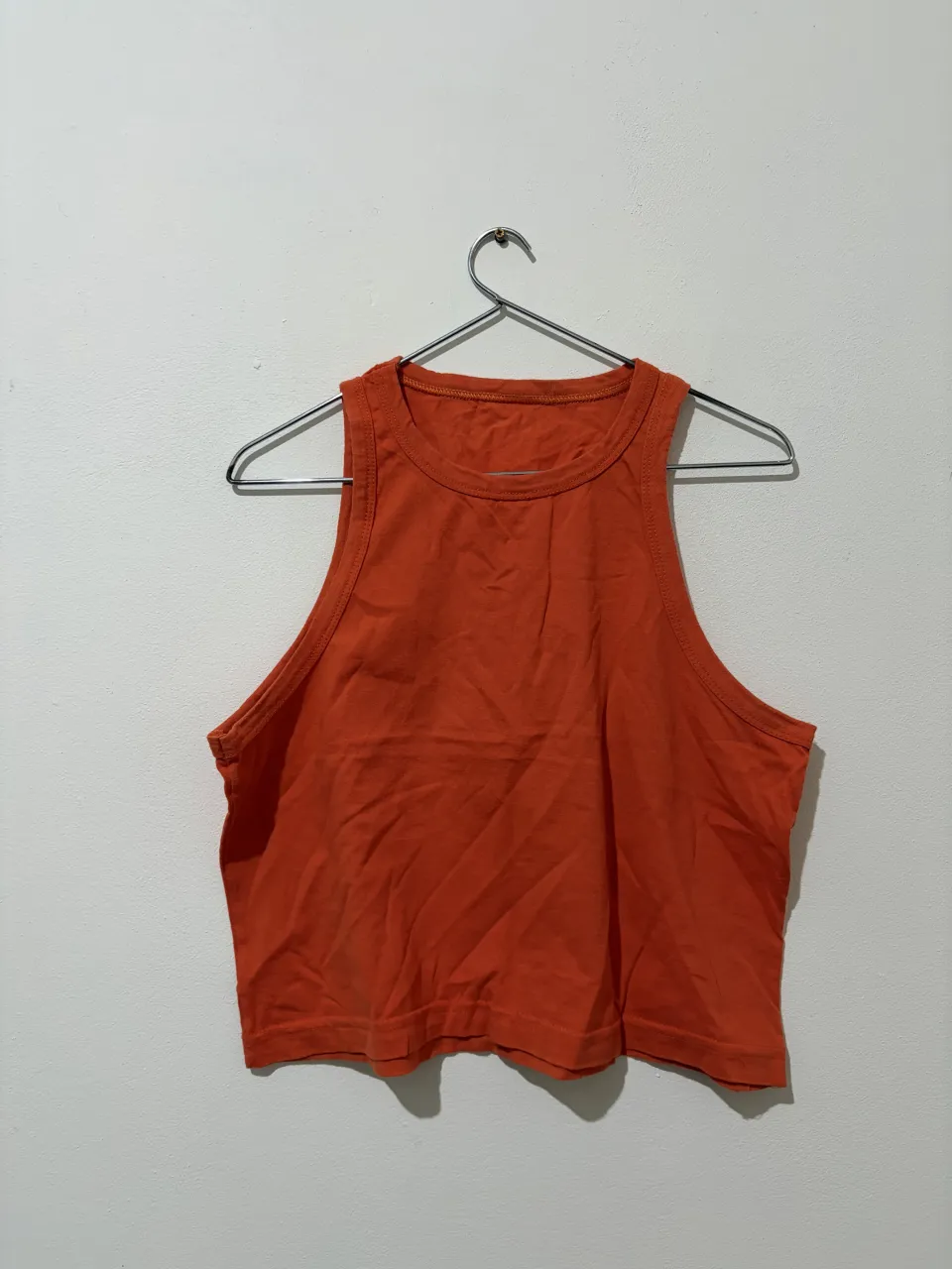 Musculosa naranja, corte crop, ideal para el verano o para usar en casa. Perfecta para combinar con shorts o jeans.