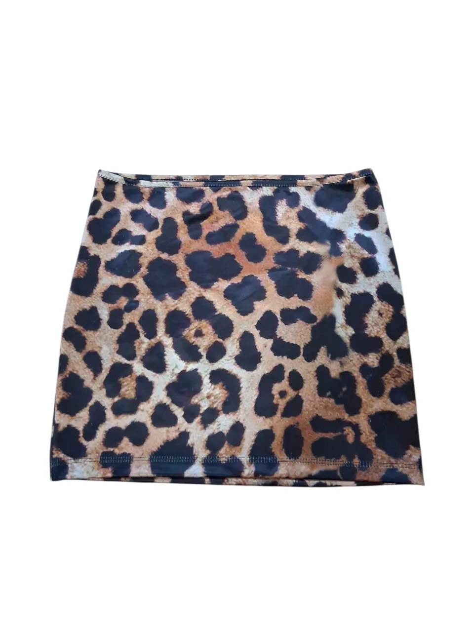 Pollera corta con estampa animal print de leopardo. Talle S. Medidas: cintura 32 cm, largo 33 cm. Es elastizada.