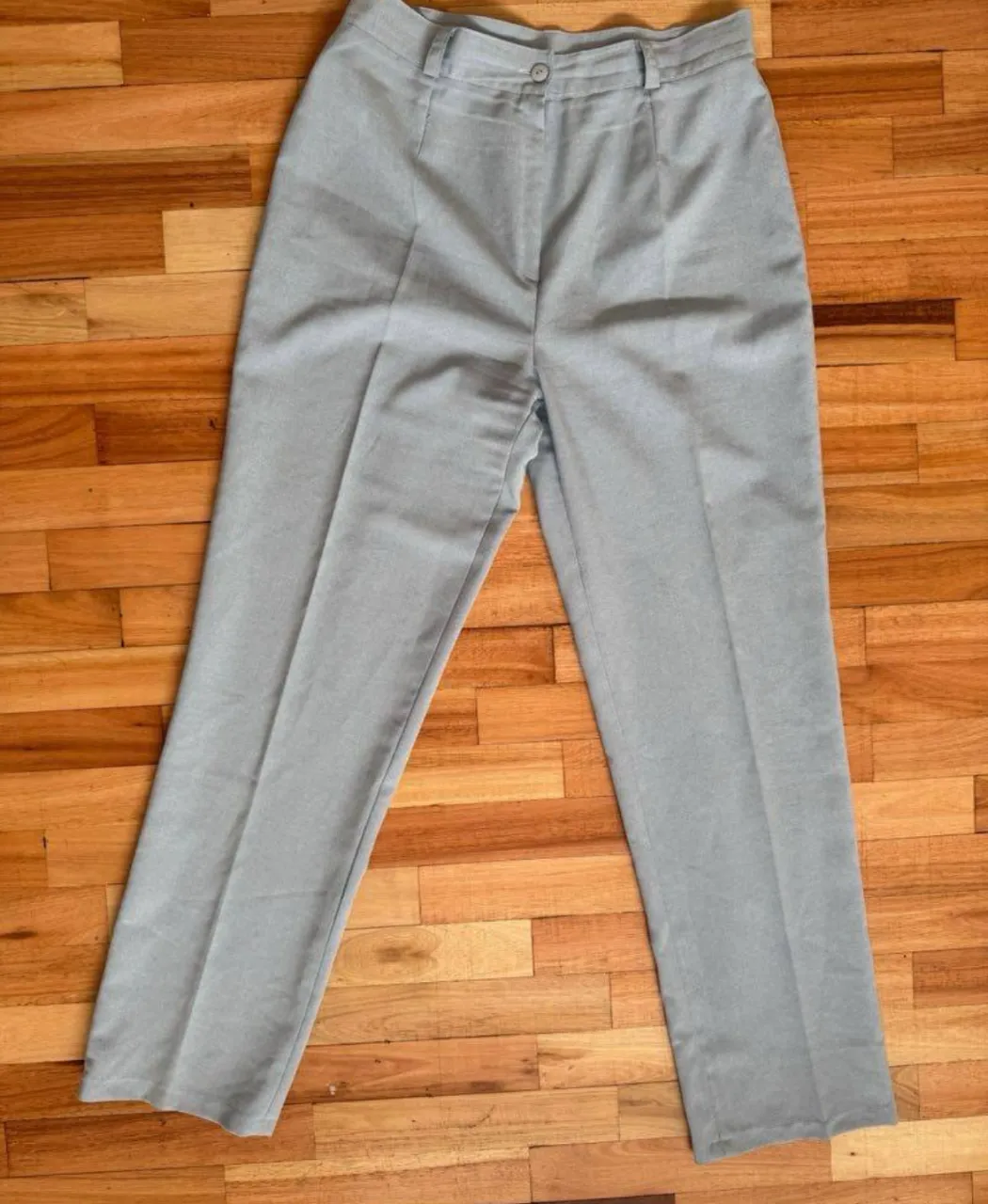 Pantalón Talle L celeste claro, tiro alto, corte recto y clásico. Ideal para un look formal o de oficina