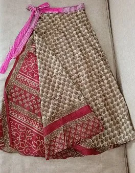 Pollera larga estampada, ideal para un look boho y fresco. Se ata a la cintura con un lazo y tiene un diseño reversible con dos estampados diferentes. Perfecta para usar en primavera y verano, ya sea para un día casual o una salida.