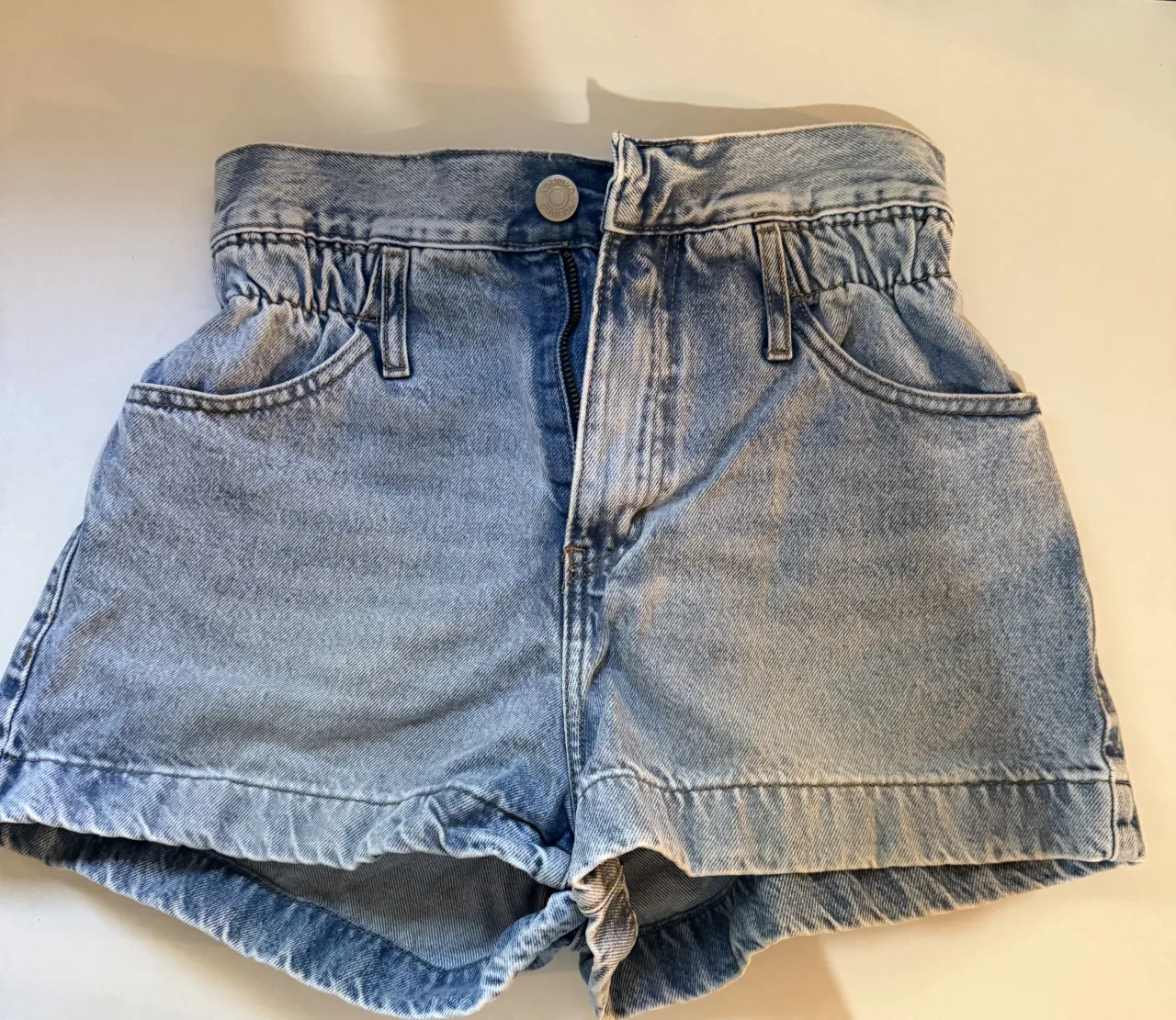 Shorts de jean tiro alto con cintura elastizada y bolsillos. Un básico súper canchero para armar looks de verano.