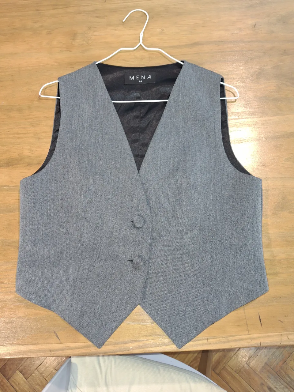 Chaleco de vestir gris, ideal para complementar un traje o para un look más formal. Posee dos botones al frente y un corte clásico.