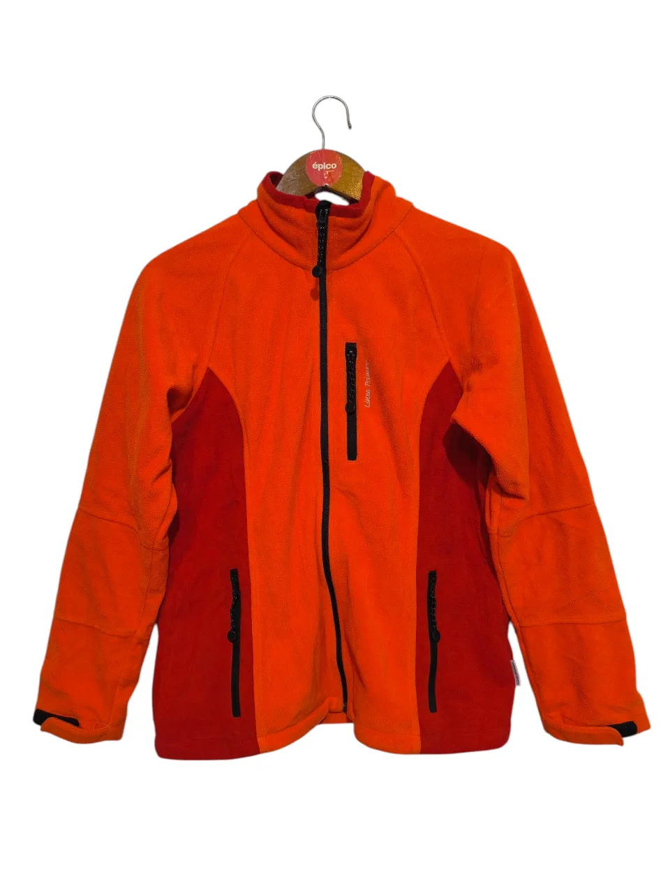 Campera de polar naranja y roja, ideal para actividades al aire libre o para un look casual y abrigado. Posee cierre completo y bolsillos con cierre. Perfecta para los días frescos de otoño o primavera. Medidas: Largo 64 cm - Ancho sisa 52 cm.