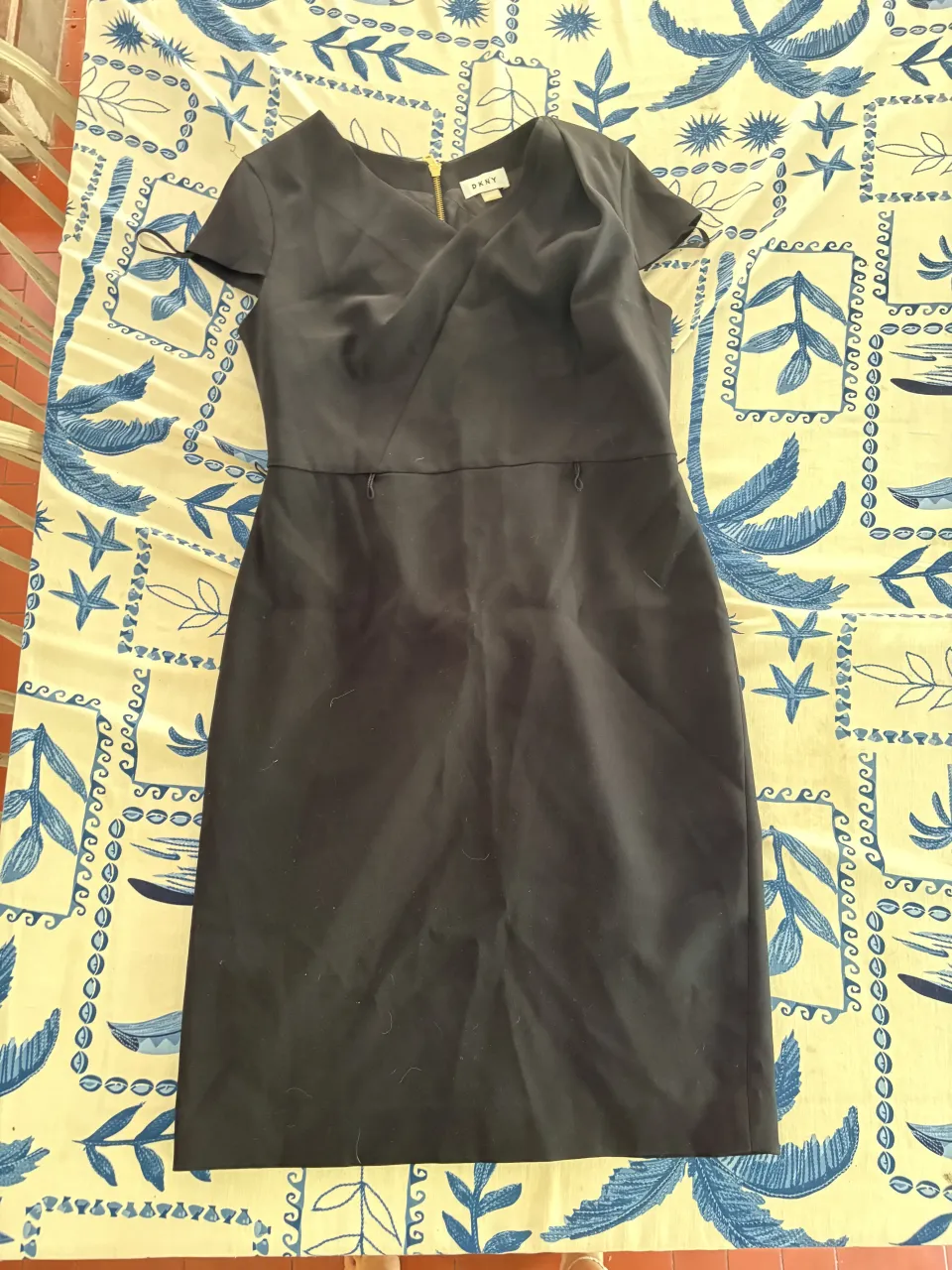 Vestido negro de DKNY, ideal para un look elegante y sofisticado. Posee un cierre dorado en la espalda que le da un toque chic. Perfecto para eventos formales o para ir a trabajar con estilo.