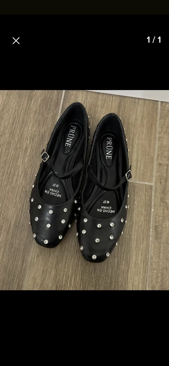 Zapatos negros con hebilla y detalle de strass. Marca PRÜNE. talle 37 chico
