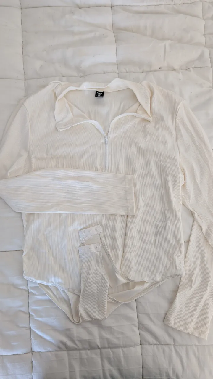 Body blanco de manga larga con cierre y botones en la entrepierna. Ideal para un look casual y cómodo.