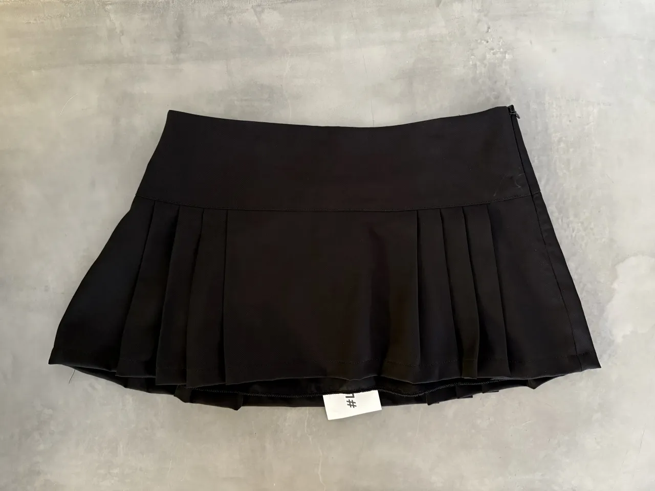 Pollera Las Pepas negra corta, con tablas y cierre lateral. Ideal para un look canchero y moderno. Va para un talle 1 (si la queres tiro bajo) o 2 si la queres tiro medio. Está forrada, la tela es divina, no tiene uso. La tela es tipo de vestir, una onda crepé.