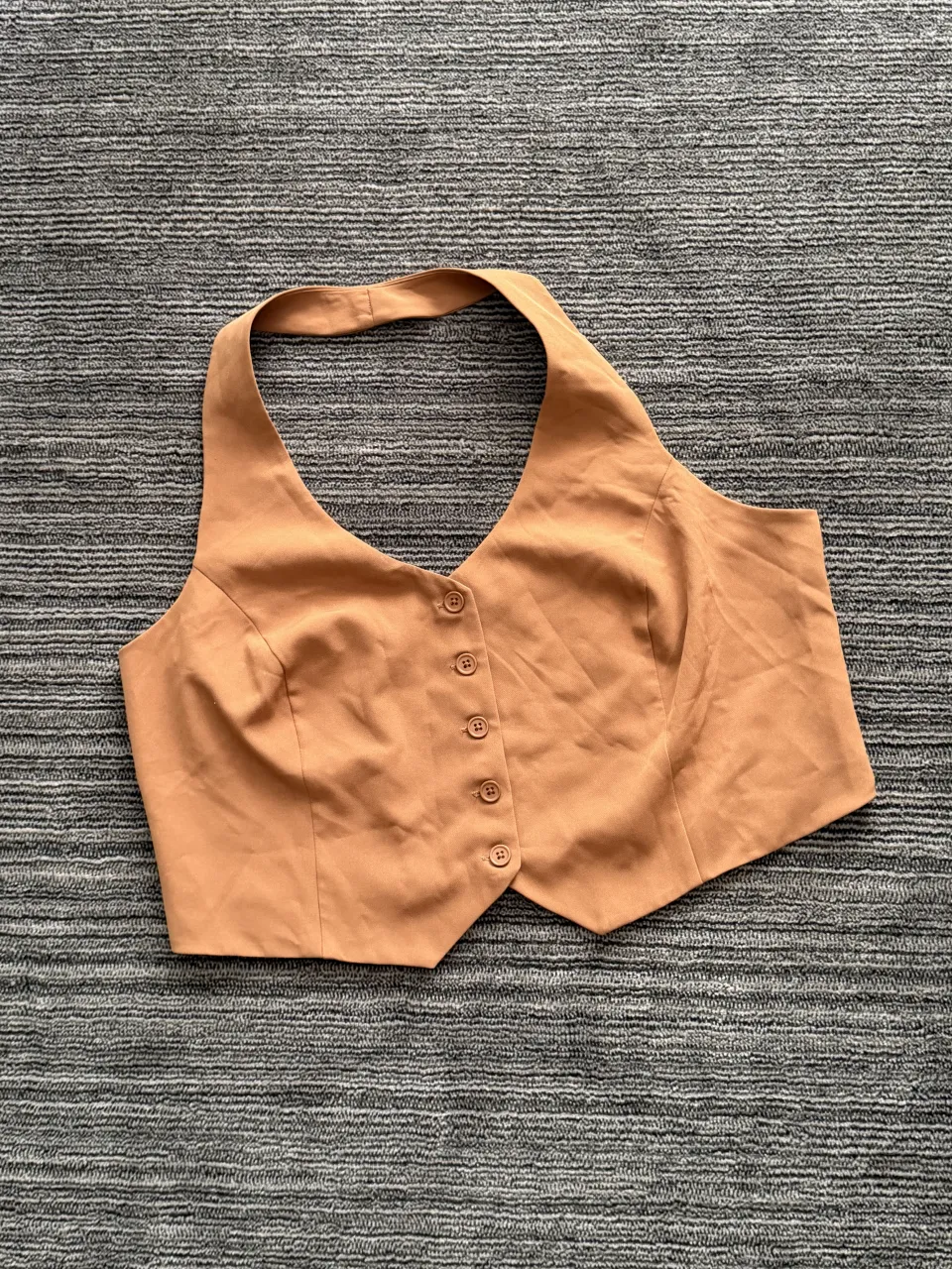 Halter Top marrón, con botones al frente y detalle de fruncido en la espalda. Ideal para un look canchero y moderno.