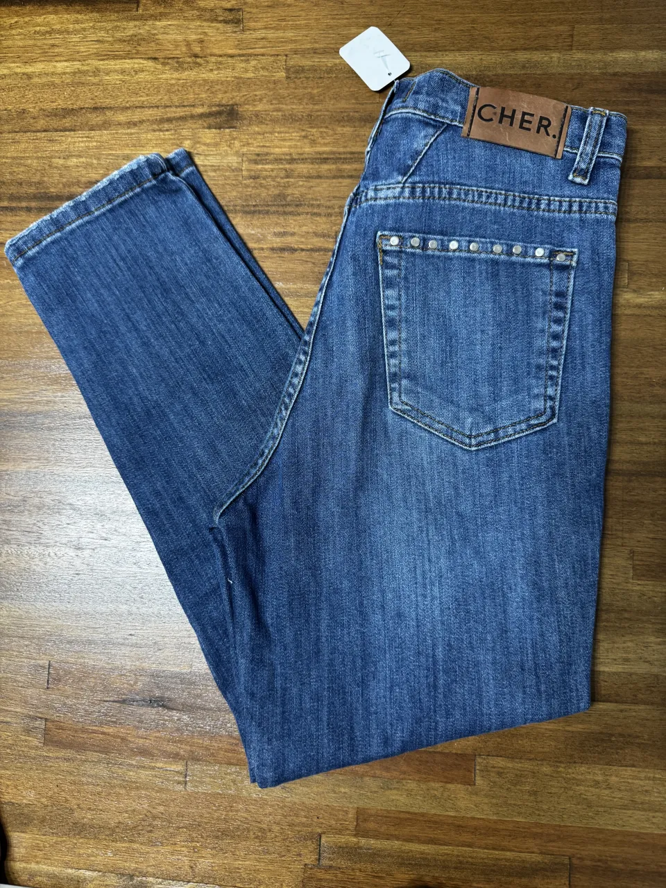 Jeans tiro alto con tachas en los bolsillos traseros. Un clásico reinventado con un toque rockero y moderno. Perfectos para un look canchero y con actitud.