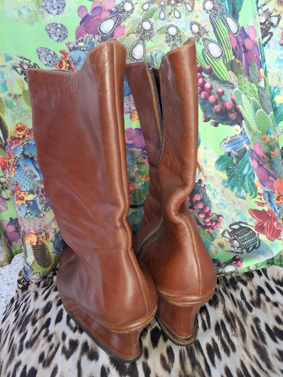 Botas de cuero color marrón con taco cuña y cierre lateral.