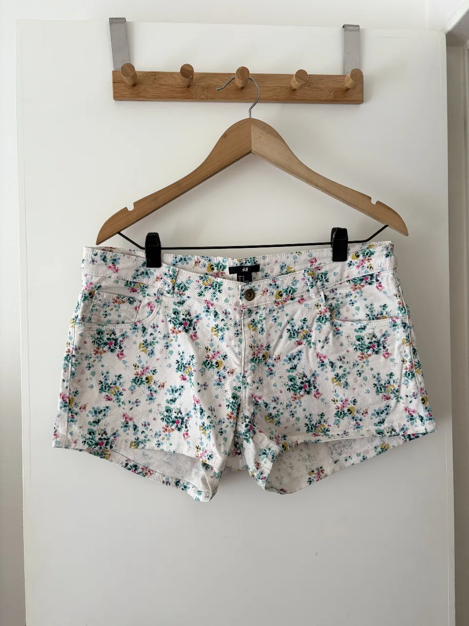 Shorts de jean blancos con estampa floral. Ideales para un look fresco y femenino. Tienen bolsillos y un corte moderno.