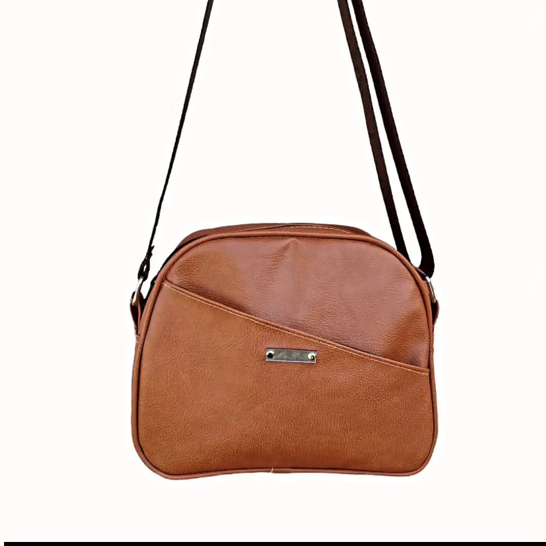 Cartera bandolera de cuero sintético color marrón. Posee un bolsillo exterior con cierre negro y un bolsillo frontal diagonal con un detalle metálico plateado con el logo de la marca. Como nueva, ningun uso. compartimiento grande. correa ajustable.