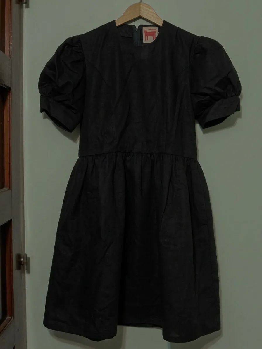 Vestido negro de mangas cortas abullonadas y falda con frunces, solo me lo puse para Navidad. es talle 3 de la marca reir enloquecer, su precio actual es $135.000 lo vendo a este precio porque no incluye el cinturon