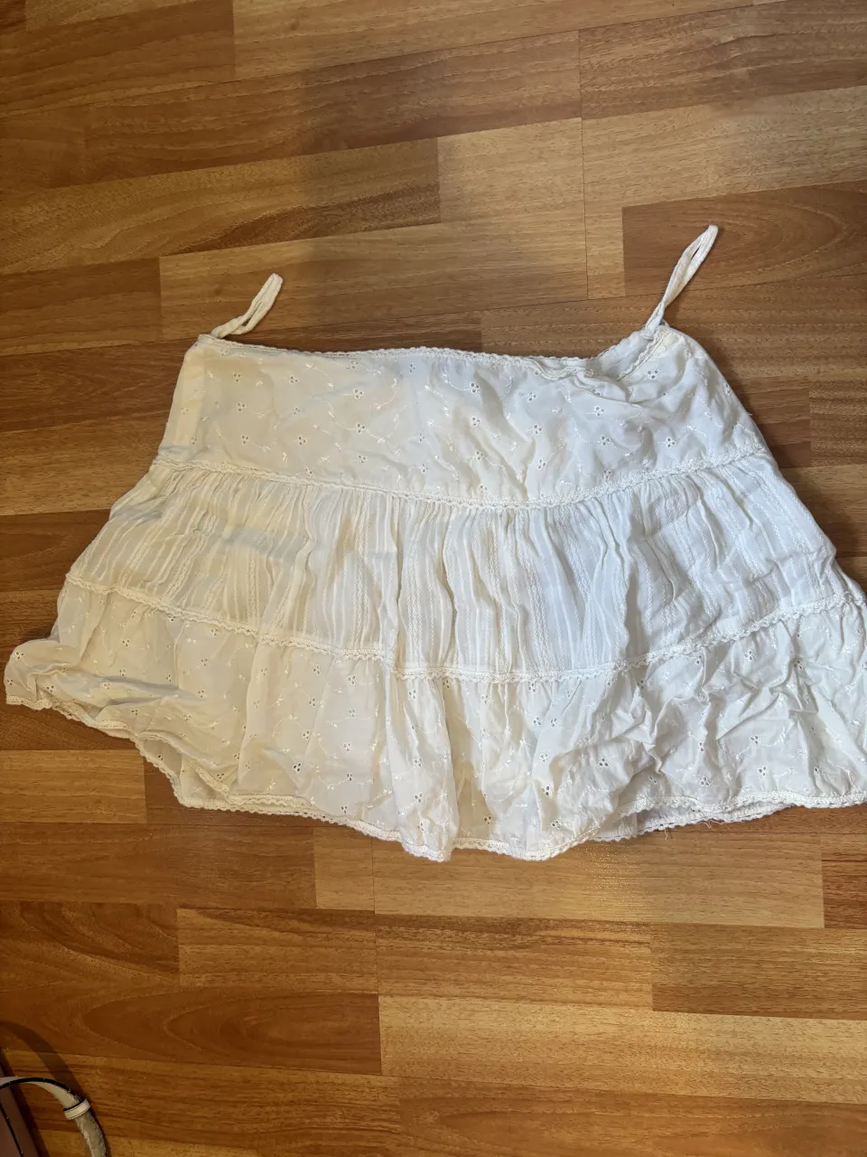 Pollera blanca . Posee volados y detalles de puntillas y bordados.