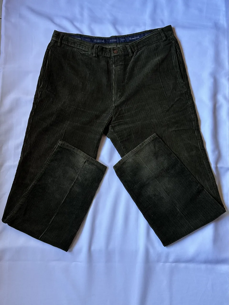 Pantalón de corderoy de color verde oscuro. Posee un botón en la cintura y cierre. Medidas aprox Cintura 48 cm Cadera 58 cm Largo 116 cm