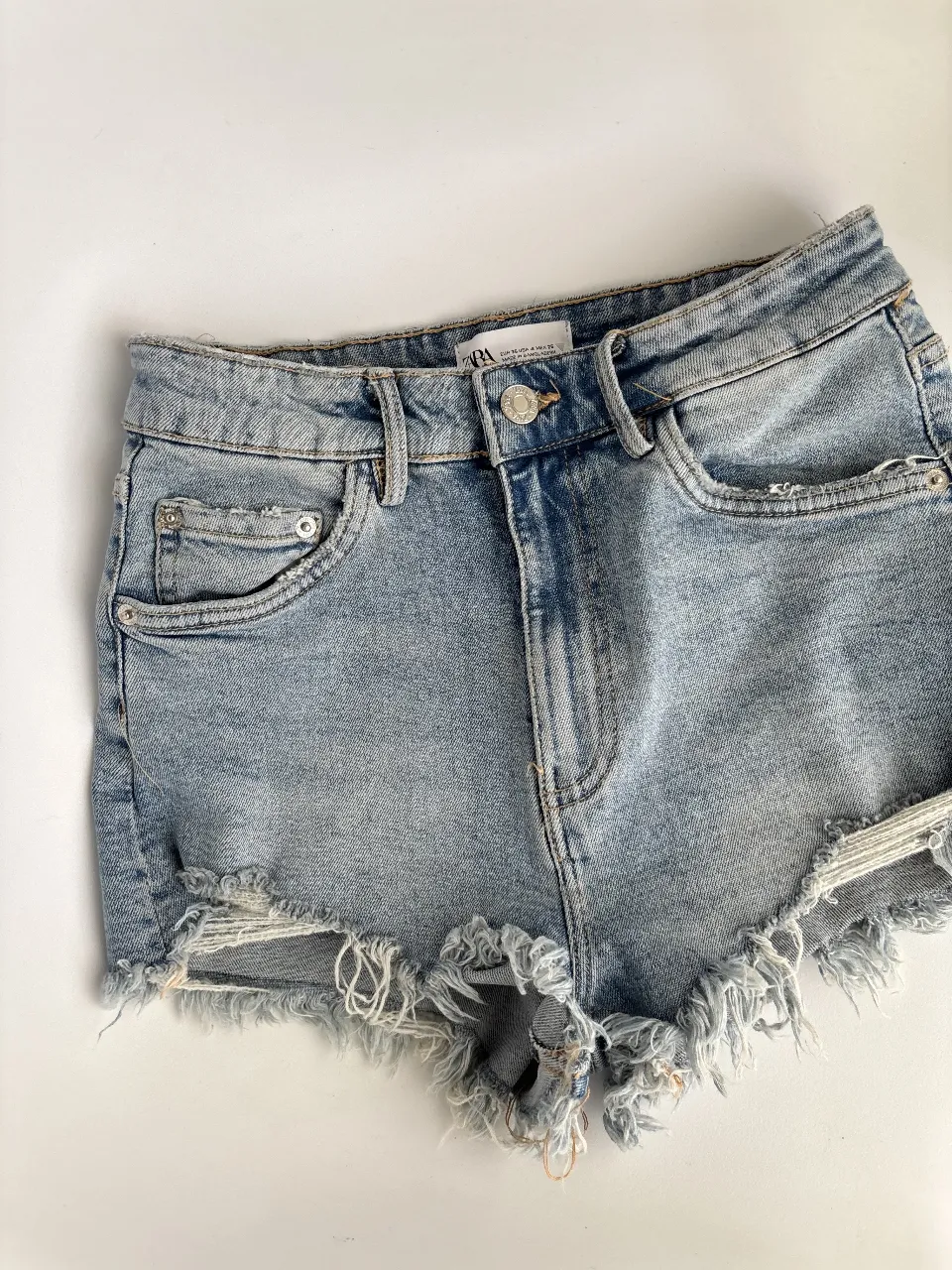 Short de jean Zara NUEVO🤍 con roturas y detalles desflecados en los bordes. Un clásico para el verano, perfectos para un look casual y canchero. Mide 30cm y estira hasta 36cm. 98% algodón - 2% elastano // short denim
