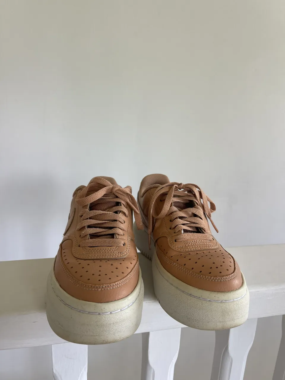 Zapatillas nike de cuero color naranja con plataforma. Cordones al tono y detalles de perforaciones en la punta.