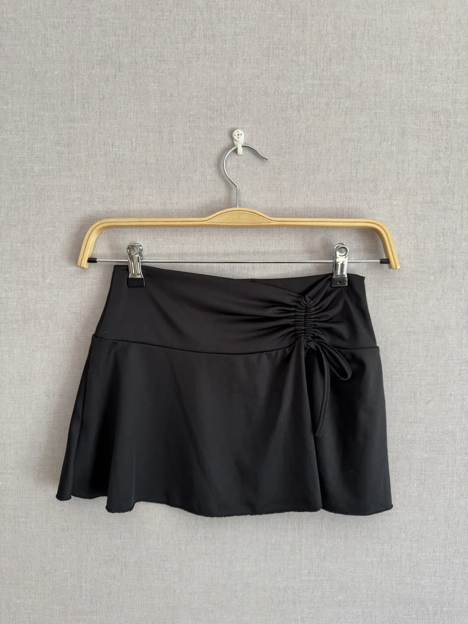 Pollera negra con fruncido y lazo ajustable en un lateral. Diseño drapeado.