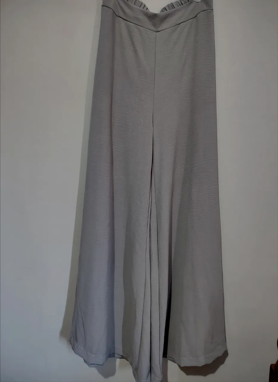 Pantalón maxi palazzo color gris con bolsillos delanteros. Abarca hasta un talle 46 inclusive.