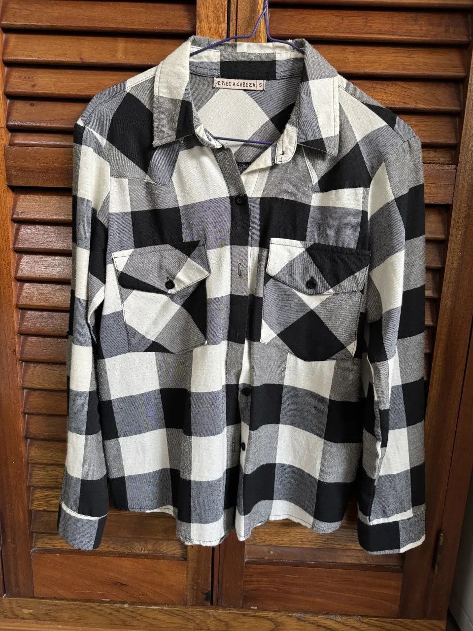 Camisa de leñador a cuadros en blanco y negro, ideal para un look casual y cómodo. Perfecta para el día a día o para actividades al aire libre.
